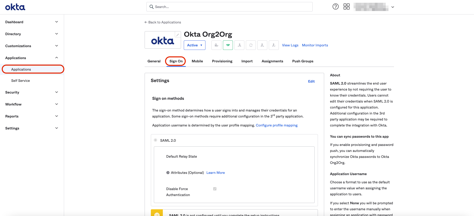 Okta SAML 集成指南 (Org2Org)